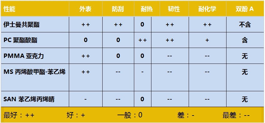 伊士曼化學(xué)Tritan與其他相類似的工程塑料比較